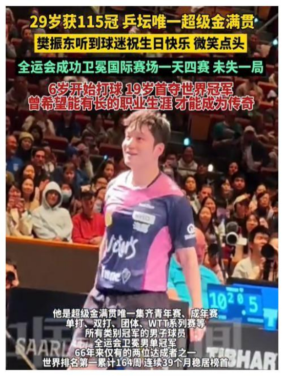 全网祝福声中,樊振东29岁115冠的话题也成为热搜焦点。