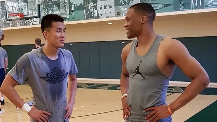 郭艾伦是国内后卫线上的佼佼者,以美式打法和出色的对抗能力著称。然而,当与NBA超级巨星威少同框时,身体素质上的差距却暴露无遗。照片中,郭艾伦和威少虽然身高相近,但整体身形却小了一圈,不论肩宽、臂展、肌肉围度,都与威少有着明显的差距。