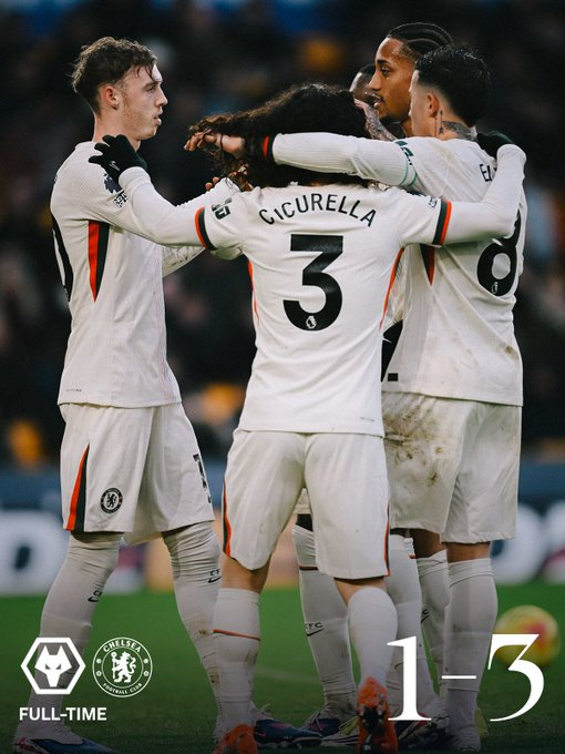 北京时间2月7日23:00,英超联赛第25轮,狼队在主场莫里纽克斯球场迎战切尔西。上半场若昂·佩德罗两次造点,帕尔默点射双响,随后帕尔默接库库雷利亚助攻再下一城,切尔西暂3-0狼队。易边再战,阿洛科达尔扳回一球,安德烈·桑托斯伤退,最终切尔西3-1战胜狼队,联赛四连胜,距前四1分,狼队继续垫底。