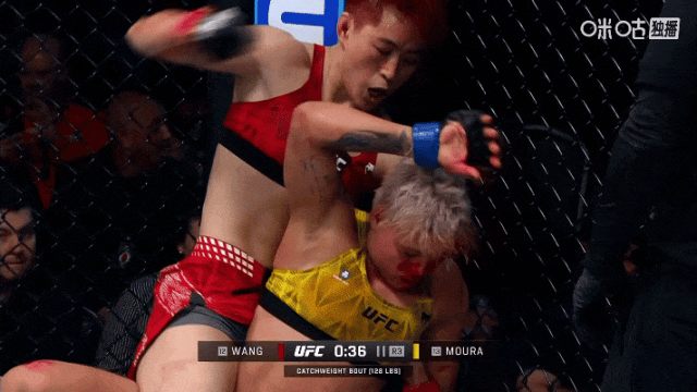 转折出现在回合最后一分钟:当莫拉再次俯身企图抱摔时,王聪一记精准重拳直接将其击倒!她随即跟上地面砸拳,莫拉虽顽强锁腿防守,但王聪以清晰的打击优势结束首回合。
