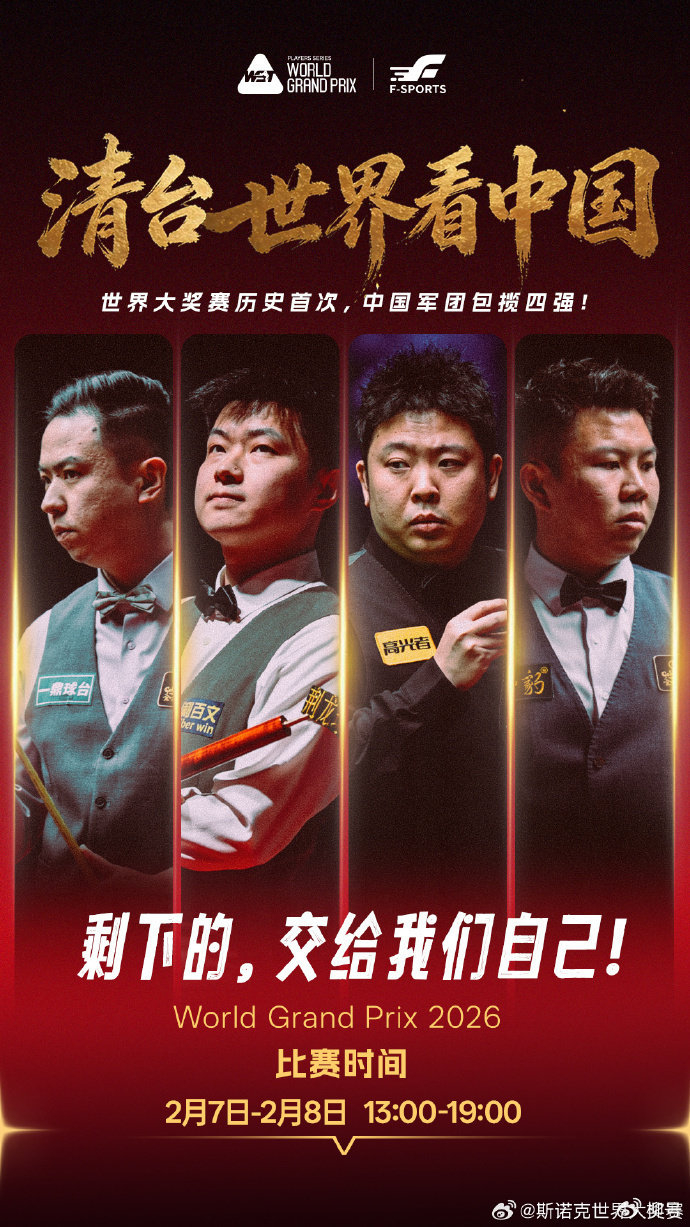 2026年斯诺克香港世界大奖赛,是本年度第三项产生冠军的赛事。共有创纪录的10名中国选手参加这项赛事,包括世锦赛冠军赵心童、“中国一哥”丁俊晖、国锦赛冠军张安达,武汉公开赛双冠王肖国栋、志在冲击排名赛收冠的周跃龙等。略有遗憾的是,丁俊晖在第一轮就出局,他以3-5输给巴里-霍金斯。除此之外,其他选手的表现都很出色。经过激烈争夺上述4名中国选手打进4强,创造了中国斯诺克军团的神奇纪录。其中,赵心童、肖国栋、张安达都是已经是各种冠军在手的球员,只有周跃龙还在为第一个排名赛冠军而苦苦奋斗。