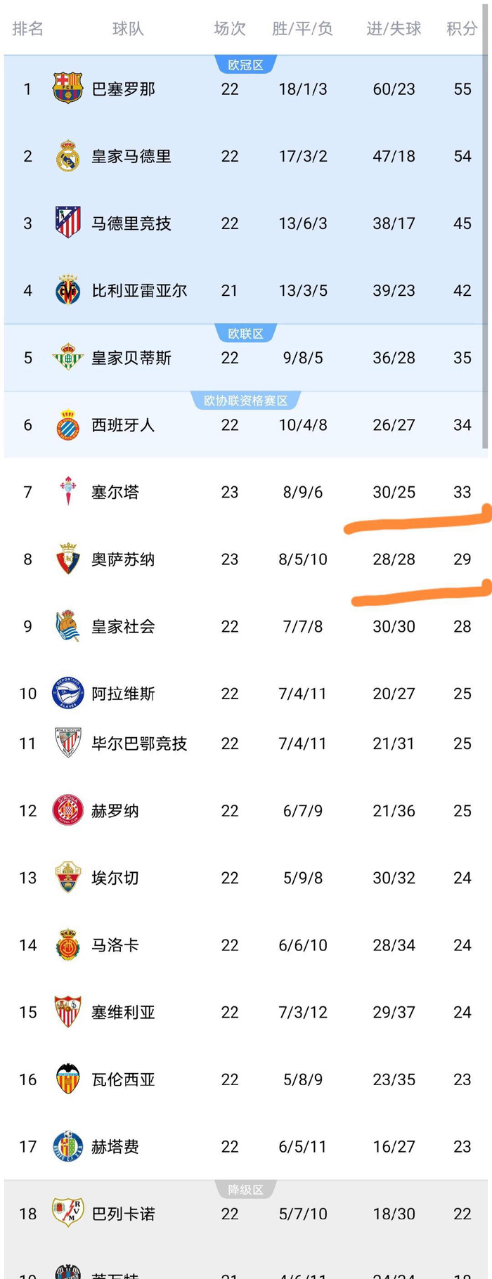 西甲最新积分榜变动,奥萨苏纳客场2-1力克塞尔塔