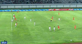在热身赛里,U17国足对阵印尼U17。邝兆镭精准斜传,赵松源头球冲顶破门!