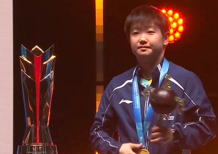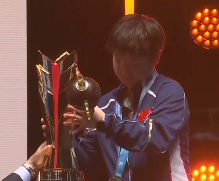 双拳指天怒吼释放!孙颖莎捧冠军奖杯露出笑容 双首冠之夜引盛赞