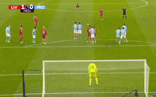 第74分钟,利物浦前场任意球机会,面对只有两人的曼城人墙,索博斯洛伊轰出世界波,皮球击中右侧立柱后入网,门将唐纳鲁马几乎毫无反应。利物浦1比0领先。