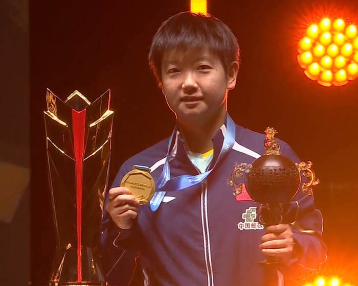 其实两人冠亚军转换就在一瞬间,总要有一个人是冠军。孙颖莎敢在决赛中用反手与王曼昱相持,取得了很大的进步。这场球的看点是王曼昱几次落后几次又扳平,决胜局打到11平,韧性十足。孙颖莎被扳平临危不乱,决胜局还有一个擦边球争议情况下能沉住气获得比赛的胜利,这是很难得的优秀球员的素质。现场球迷引争议,比赛一开始全场就是一边倒的给孙颖莎加油,还是过去的老场面,孙颖莎每赢一分,现场就是山呼海啸。