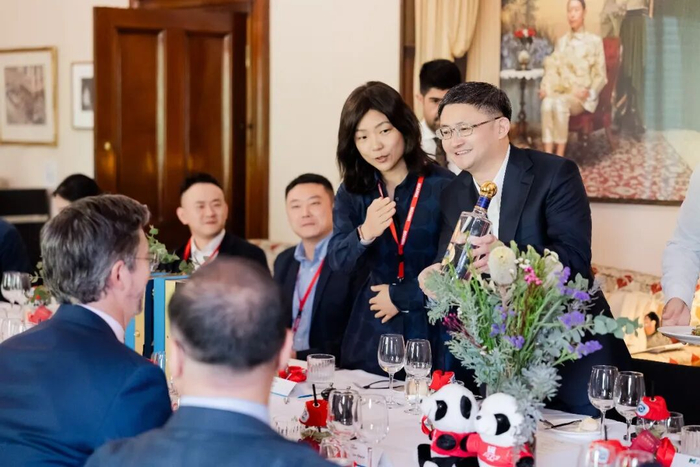 图为泸州老窖团队受邀在澳大利亚墨尔本市政府进行了正式午宴,午宴现场气氛热烈,双方共同品鉴了在墨尔本当地备受欢迎的国窖1573澳网纪念版产品