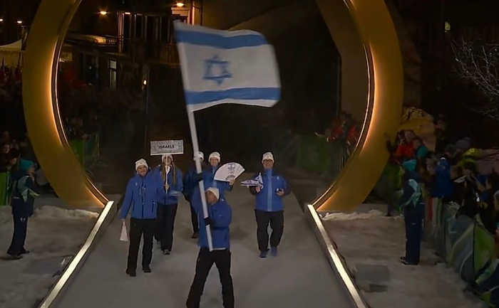 以色列代表团第43个出场,旗手是花样滑冰运动员玛利亚塞纽克,共有10名运动员参赛,而他们一亮相,就遭到全场巨大的嘘声。这是因为自从去年以来,意大利官方和民众多次谴责以色列,声援巴勒斯坦,甚至有球迷反对他们参加世界杯,不过FIFA主席因凡蒂诺已经表示不会禁赛以色列。