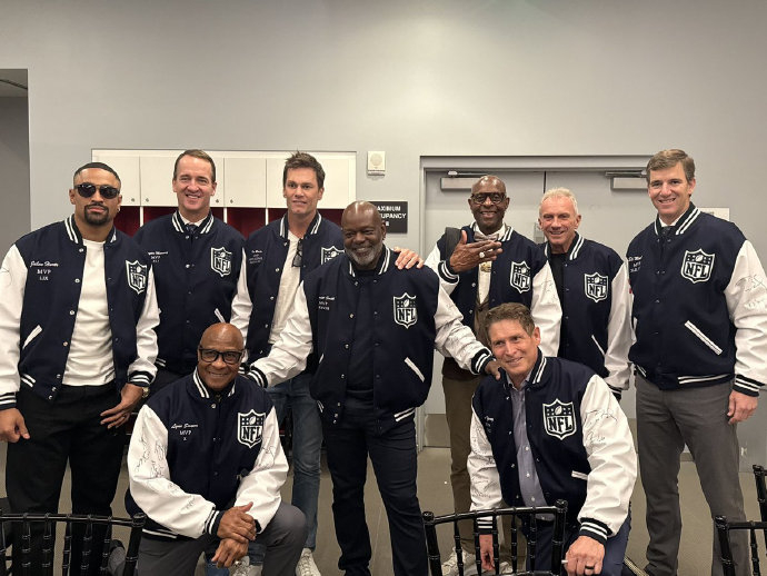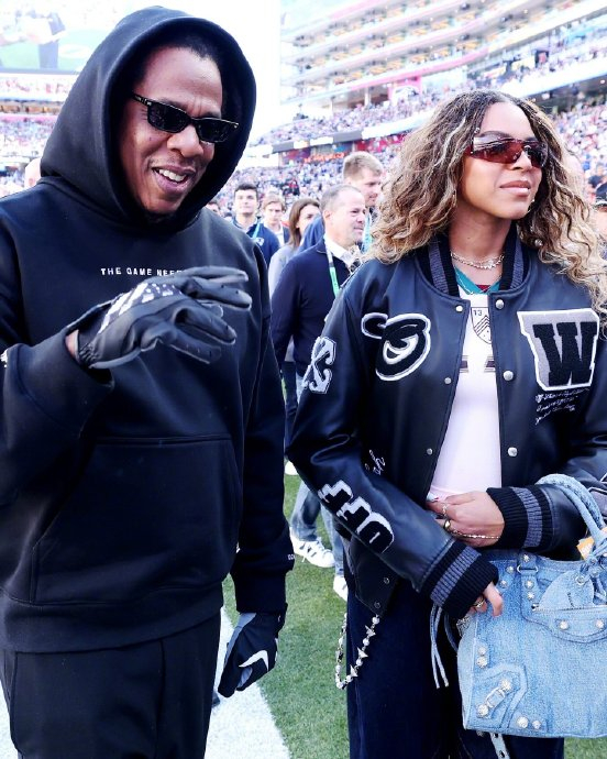 本届超级碗观众席堪称“全球顶流俱乐部”,费德勒身处名流环绕的核心区域。他与同样现身现场的布雷迪、曼宁兄弟等NFL传奇人物交流致意,两大领域“GOAT”(历史最佳)的同框引发球迷热议。更引人注目的是他与流行天后的互动——碧昂斯与Jay-Z夫妇携女儿Blue Ivy现身时,费德勒主动上前寒暄,镜头捕捉到双方笑容满面的场景。而贾斯汀·比伯与海莉夫妇作为其多年好友,更在现场与费德勒亲密交谈,轻松氛围尽显私交深厚。