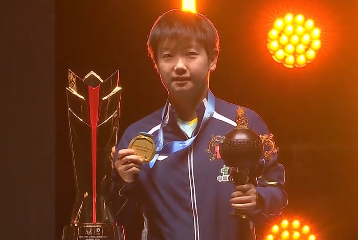 这个球一出现,孙颖莎马上向王曼昱示意是擦边,并准备发下一个球。但裁判反复提醒,这是一个无效擦边球,擦的是侧边。孙颖莎作出了吃惊的表情,但并没有提出异议。调整了一下心情后,继续比赛,并最终13-11赢下了决胜局,4-3战胜王曼昱,首次夺得亚洲杯冠军。