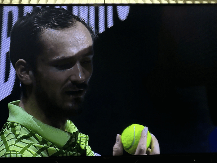 据网球记者Jose Morgado报道,梅德韦杰夫在比赛中途要求裁判长到场,公开批评赛事指定用球品牌:"我们不应该使用海德(HEAD)品牌的网球。我们不应该购买它,也不应该推广它。"
