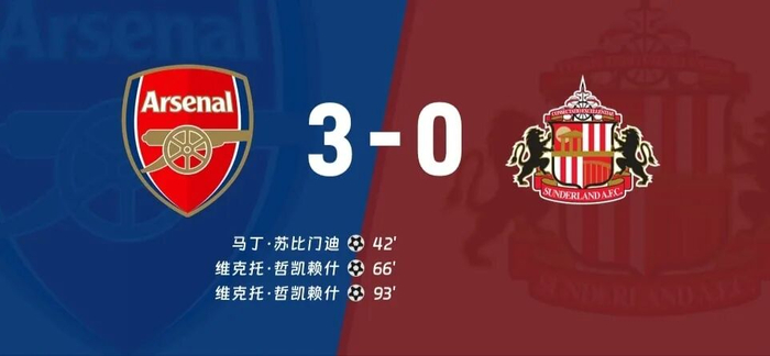 英超战况|阿森纳3-0桑德兰,哲凯赖什替补梅开二度,苏比门迪世界波+7.8分全场最佳