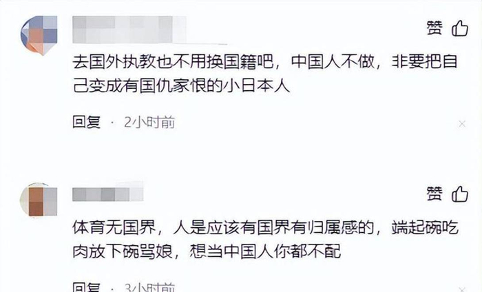 “让日本人来培养竞争对手就算了,干嘛还要放弃中国国籍啊?是不是就想在日本队混得更舒服点啊?”