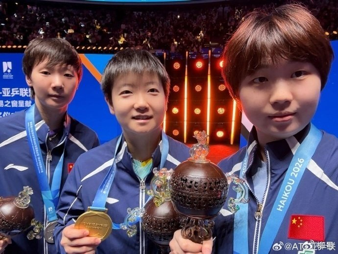北京时间2月10日消息,2026年乒乓球亚洲杯落幕,中国队发挥非常出色,包揽男女单打冠军,王楚钦、孙颖莎笑捧冠军奖杯。就在中国乒乓球队庆祝胜利的同时,赛前非常期待赢得男女单打冠军的张本智和张本美和,与门他的父亲极其失望,全部哭丧着脸。