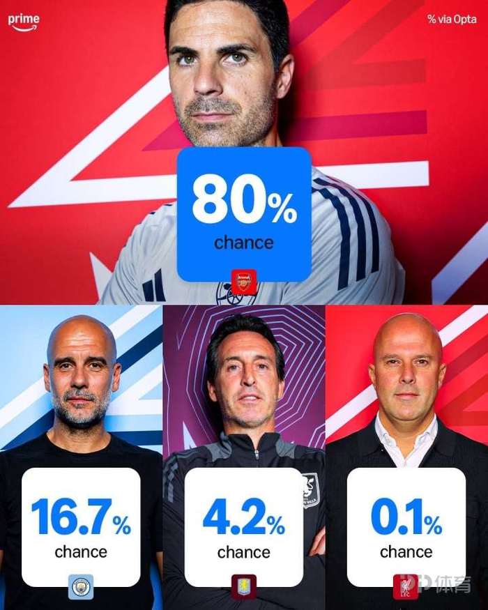 360体育-OPTA英超夺冠概率:阿森纳80% 利物浦仅0.1%