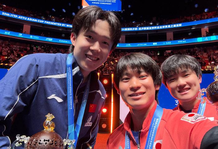 2025年亚洲杯完结,国乒依旧拿到了双冠成为最大赢家,日乒则是第二赢家,日乒在男单方面拿到银牌与铜牌,日乒在女单方面张本美和拿到了第四名。张本智和、户上隼辅与王楚钦合影时笑得非常开心。