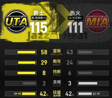 正是他的稳定输出,加上全队7个人得分上双的“团队篮球”,让爵士在最多落后15分的情况下,硬生生从热火主场抢走了一场115比111的胜利,成功上演了一出“复仇记”。