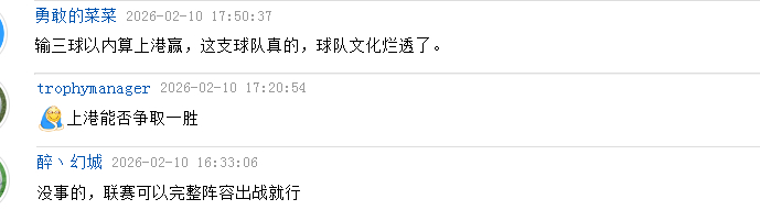 看到海港此举,网友也看不下去了(下图)。有球迷表示“输三球以内算上港赢,这支球队真的,球队文化烂透了。”还有人表示没事的,中超联赛上可以完整阵容,以全主力出战就行。