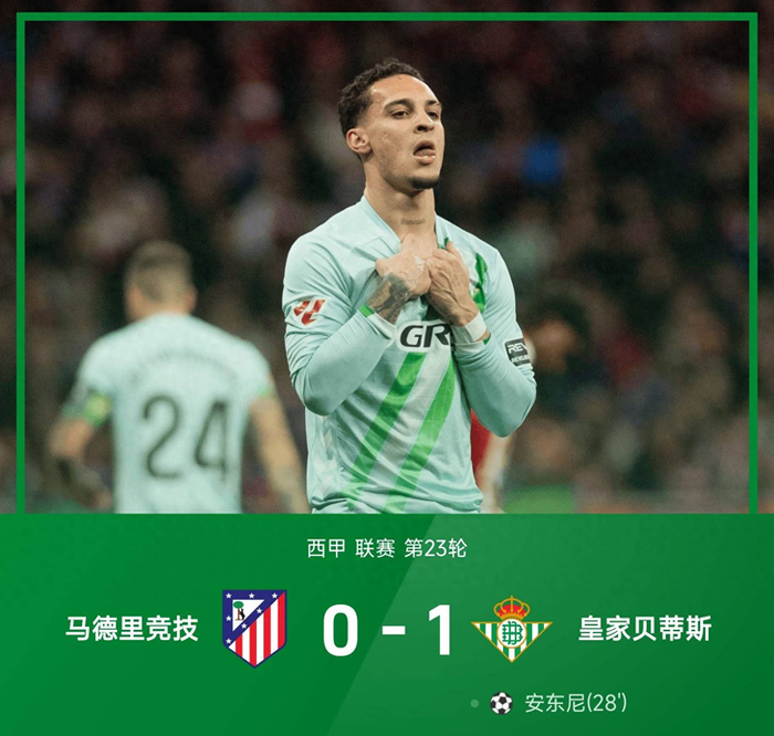 西甲!0-1爆大冷,安东尼一锤定音,皇家贝蒂斯客胜马德里竞技!_卢克曼_兹曼_比赛