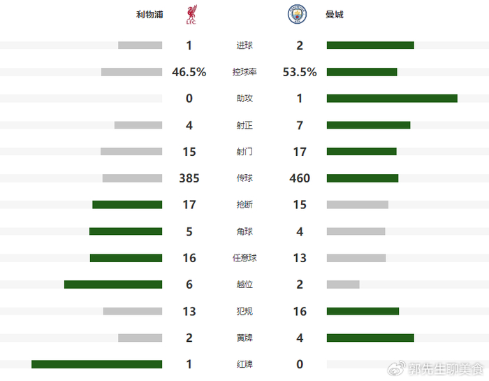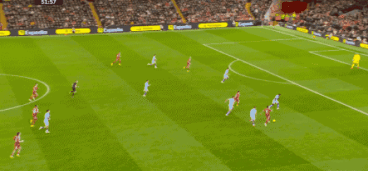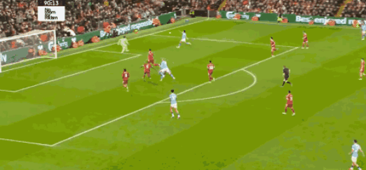 第90+3分钟,阿利森禁区内扑倒曼城进攻球员,送给了对手一粒点球,哈兰德主罚命中,将比分定格为了2-1。