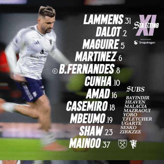 虎扑02月11日讯 曼联在本轮英超对阵西汉姆联的比赛中,再次派出了与前两场完全相同的首发阵容。