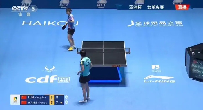 比赛来到第7局,孙颖莎8-7领先时,双方展开了拉锯战。最后一拍的对决中,孙颖莎直接把球拉到了边线上,打出一个“擦边球”!紧接着孙颖莎举手向王曼昱致歉。这也是乒乓球领域的一项传统,一旦运动员擦边得分,都会举手向对手致歉。