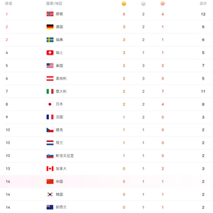 米兰冬奥会已经结束4个完整比赛日,从奖牌榜情况来看,挪威无愧于传统强队,拿到6枚金牌稳居奖牌榜第一位,德国队、瑞典队、瑞士队都是获得3枚金牌,亚洲代表团只有日本队拿到金牌,总共2枚,中国队、韩国队等颗粒无收。