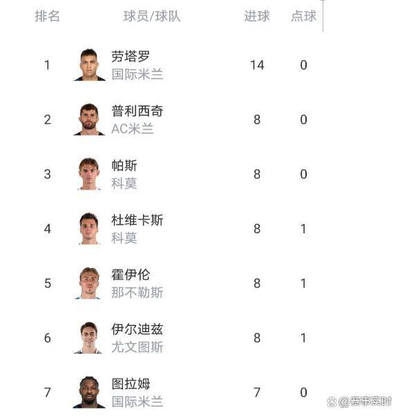 在个人数据的舞台上,国际米兰的劳塔罗·马丁内斯是独一无二的王者。射手榜上多人进球在7个或以上,但只有劳塔罗一人的进球数达到了两位数,他在联赛中已经攻入了11球,遥遥领先。这种“独一档”的表现,不仅是个人能力的体现,也折射出国际米兰整体攻击力的强大。
