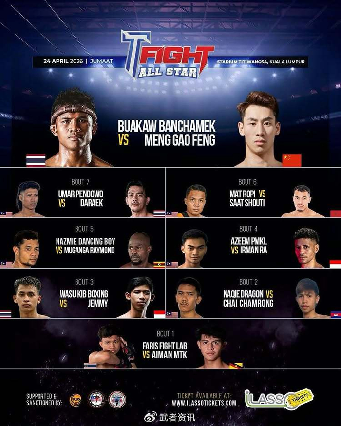 武者网讯 2004年和2006年K-1 MAX冠军播求·班柴明(Buakaw Banchamek)的下一场比赛已经确定,他将对阵中国名将武林风冠军孟高峰,比赛将于4月24日在马来西亚吉隆坡举行。