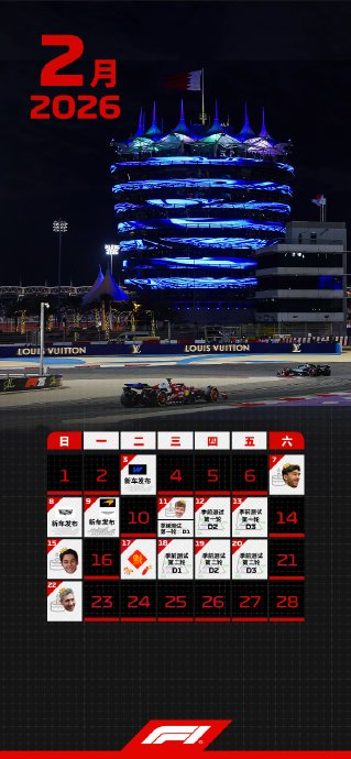 F1车手需提前适应2026赛季新规,巴林季前测试紧贴春节(2月17日),新车发布、测试连轴转,团圆让位于技术磨合。