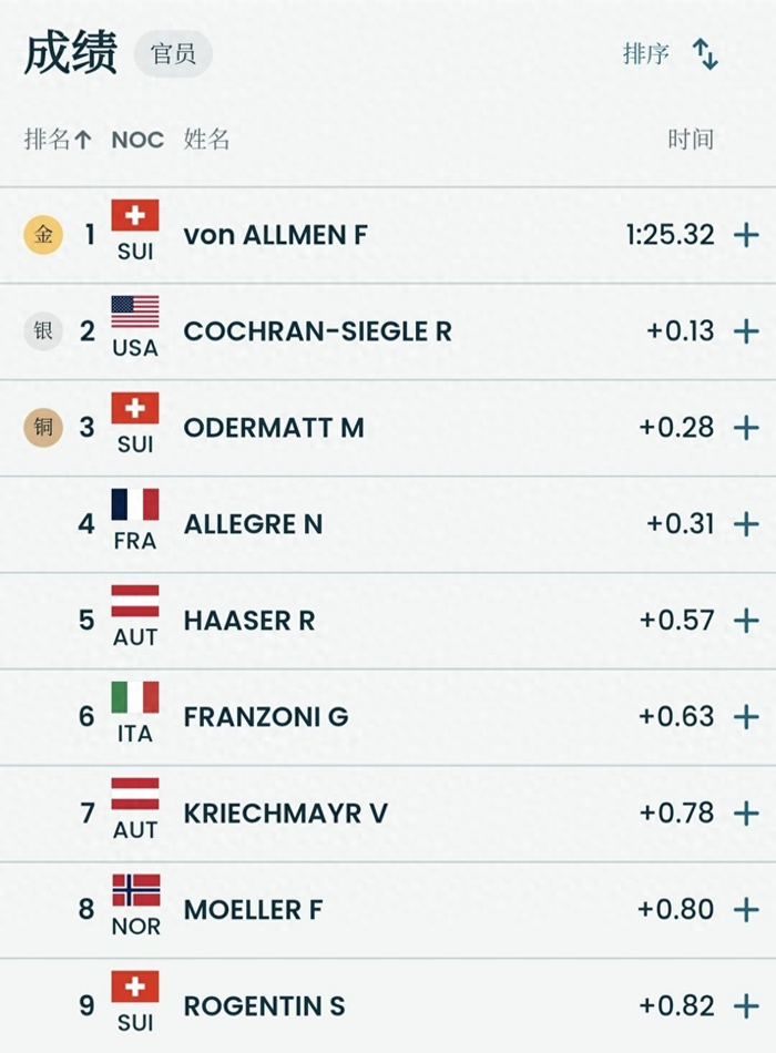 2月11日,米兰冬奥会高山滑雪男子超级大回转赛场,24岁的瑞士选手弗兰约·冯·阿尔门以1分25.32秒的成绩惊险夺冠,0.13秒的优势让他加冕本届冬奥会首位“三金王” 。