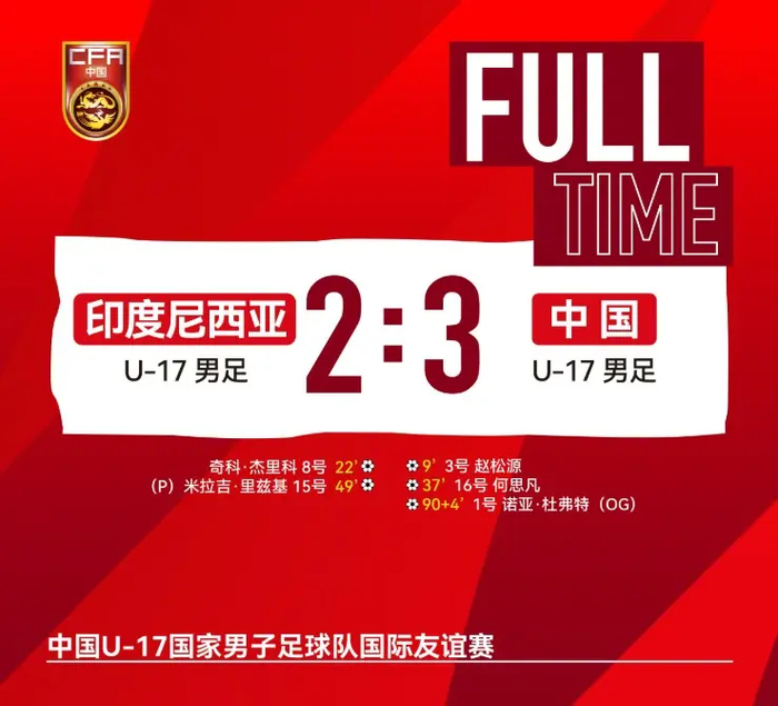 U17国足用一场惊心动魄的胜利,完成了对印尼的双杀。