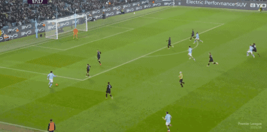 第39分钟,福登大禁区前沿分球,哈兰德突然起脚远射,连场破门将比分改写为了3-0。