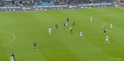 第8分钟,福登凌空抽射,皮球折射后飞出底线。