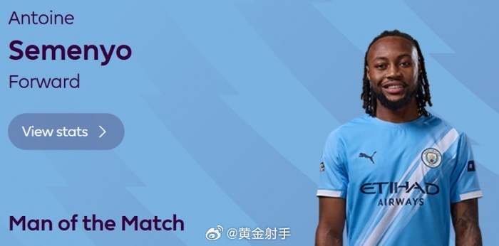 曼城3-0胜富勒姆,塞梅尼奥传射当选最佳 曼城蓝月追光 02.1207:11 关注 #曼城[超话]# 本轮英超,曼城3-0击败富勒姆。本场比赛塞梅尼奥首发传射建功,赛后他也当选英超官方球迷票选全场最佳球员。#曼城vs富勒姆##黄金射手##超话创作官#