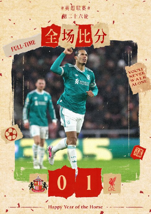 当终场哨响,红军队员相拥庆祝,而桑德兰球迷仍为球队鼓掌。这场比赛浓缩了英超的魅力:豪门的底蕴在逆境中闪光(利物浦伤兵满营仍靠核心一击制胜),升班马的铁血让奇迹触手可及(桑德兰从英甲到逼停豪门的涅槃)。范戴克的头球不仅终结纪录,更证明:在英超的赛场上,坚韧与战术执行力永远比不败光环更珍贵。