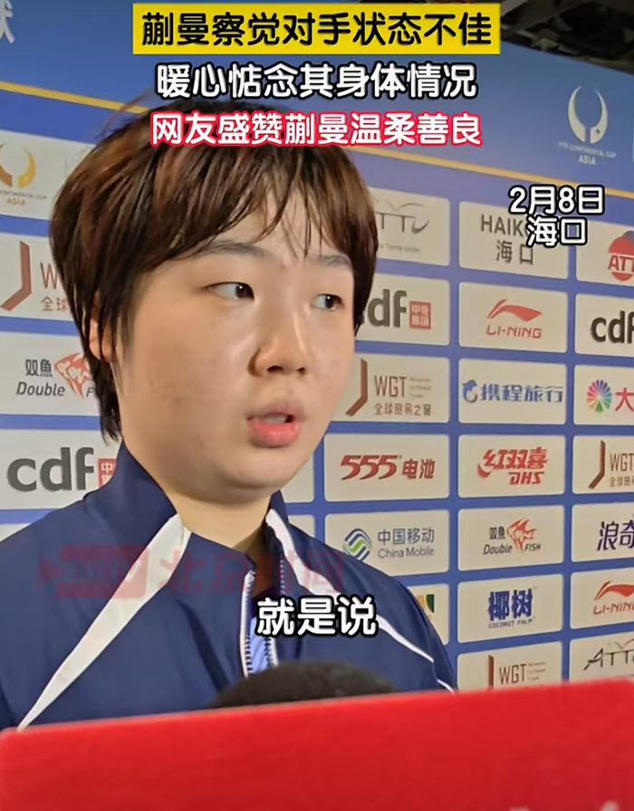 或许是因为目标定的太大的了,在这一场比赛之前,张本美和似乎并不把快马放在心上,因为两者此前的对决,她是4:0碾压的获胜,所以在采访的时候,张本美和称呼蒯曼为“中国选手”,张本美和表示没有进入决赛很可惜,但是想要击败中国选手拿到奖牌。而在被碾压击败之后,大哭的张本美和也是改变了对于蒯曼的称呼和评价。