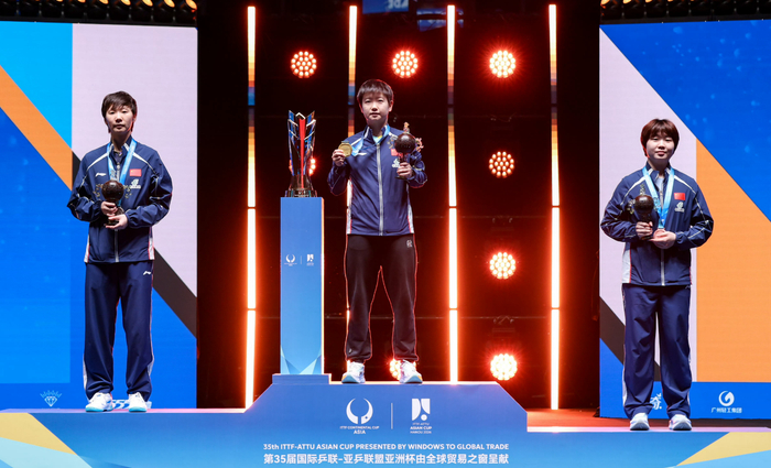 2026年乒乓球亚洲杯女单国乒包揽前三,孙颖莎冠军,王曼昱亚军,蒯曼季军,孙颖莎拿到生涯首个亚洲杯冠军,王曼昱则卫冕失败,但王曼昱在本届亚洲杯淘汰了日乒一姐张本美和与韩乒一姐申裕斌,王曼昱也展现了自己的统治力。