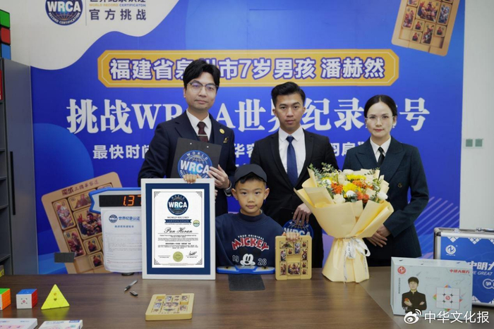 泉州7岁男孩潘赫然刷新WRCA华容道盲解世界纪录