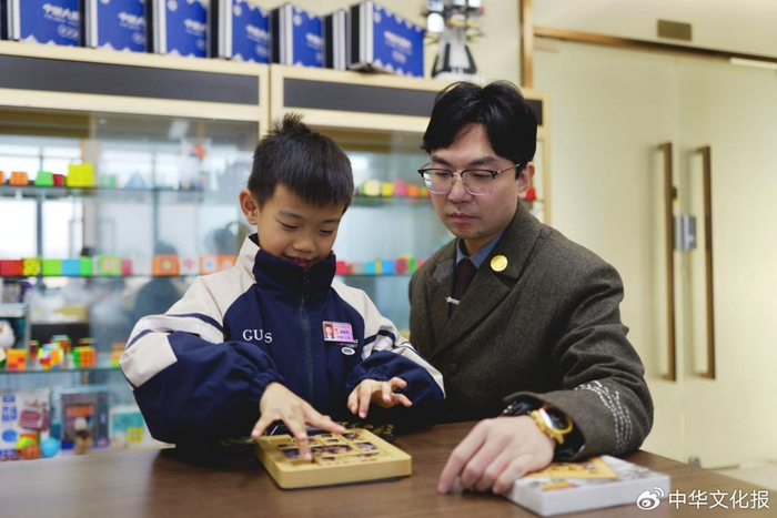鲜为人知的是,这1.37秒的“一瞬封神”,背后是日复一日的坚持与沉淀,是师者匠心的引领与家庭温暖的守护。潘赫然与华容道的结缘,源于一场偶然的聚会。彼时,叶佳希老师正在现场演示三国华容道,滑块在其指尖灵活穿梭,曹操、关羽等三国人物棋子有序腾挪,这一幕瞬间吸引了年仅6岁的潘赫然。他瞪大好奇的双眼,全程专注凝视,直到叶佳希完成演示,才怯生生地凑上前询问:“老师,这个‘会动的三国棋盘’真有意思,我能试试吗?”