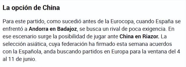 周四,《马卡报》透露,西班牙国家队有可能6月4日在热身赛里对阵国足,这将是西班牙出征世界杯之前在本土的最后一场热身赛。
