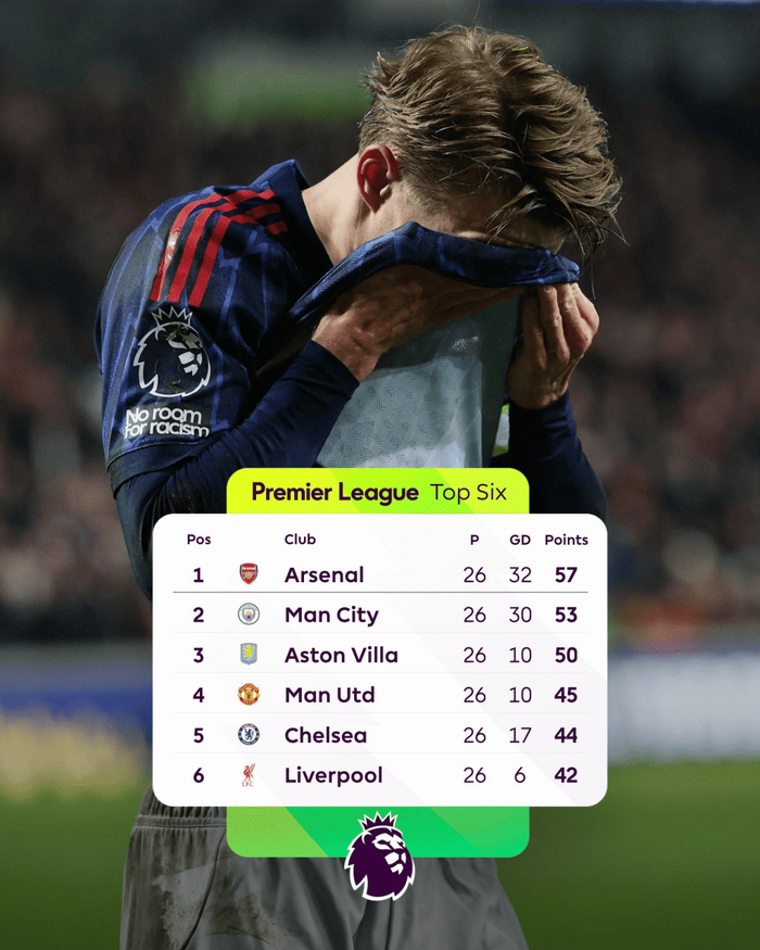 虎扑02月13日讯 英超第26轮,阿森纳客场1-1战平布伦特福德。