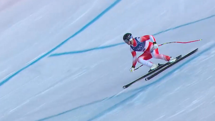 滑降项目是高山滑雪中速度最快、落差最大、最惊险刺激的单项,被誉为“高山滑雪王冠上的明珠”。男子选手滑行时速最快可达每小时140公里,恰似田径男子百米“飞人大战”。比赛以一次性滑行决胜负,用时最短者获胜,计时精确到百分之一秒。