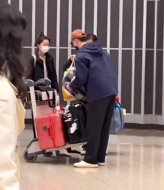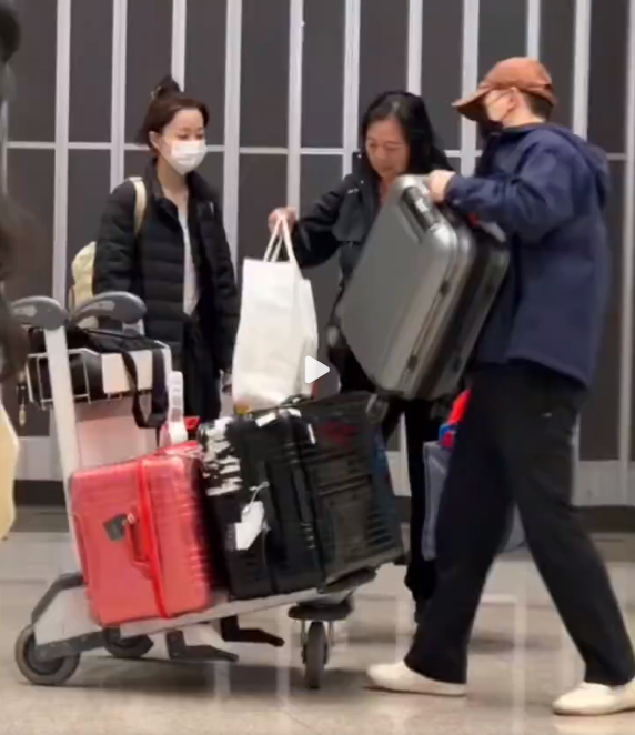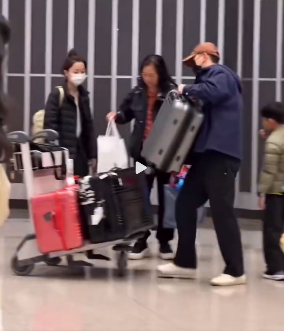 2月12日,马龙一家人结束了迪拜的旅行,启程回国。在机场,马龙负责扛着大包小包,收拾行李。
