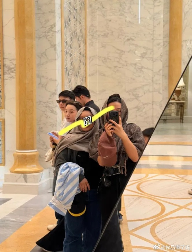 2月11日,马龙和妻子夏露带着两个儿子来到了迪拜的总统府参观,夏露素颜把丝巾当抹胸穿,配着一身黑,显得皮肤白白的,也太美了!