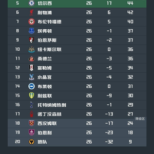 北京时间2月13日,2025/26赛季英超联赛结束了第26轮的全部比赛,积分榜的形势也产生了进一步的变化。