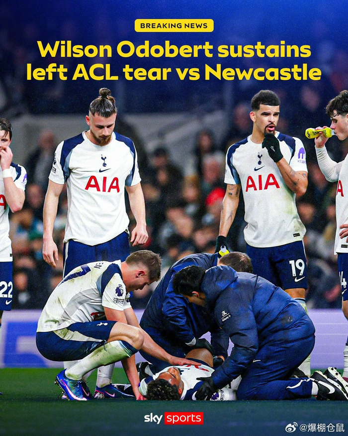 热刺前锋奥多贝尔左膝十字韧带断裂赛季报销 爆棚仓鼠 02.1313:42 关注 【重伤】21岁的热刺前锋奥多贝尔左膝前十字韧带断裂,将接受手术治疗,赛季报销,本赛季他出场33次,贡献2球4助攻。#英超#