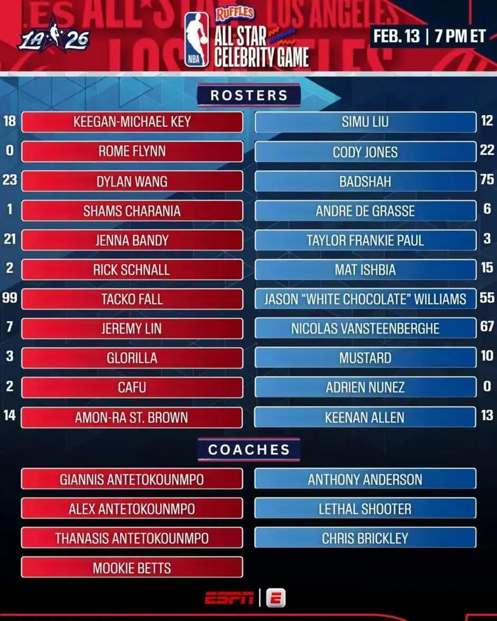 除此之外名人赛也是众星云集,中国演员王鹤棣再次参赛,他以往精湛的篮球技艺令人印象深刻,此外他的队友还包括了林书豪、巨塔法尔、前足坛巨星卡福等。
