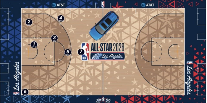 每队每轮有70秒的时间,一共有7个点位可供选择,每队必须按照规定的点位从1号点位依次投到7号点位(具体点位分布如上图),队员则是必须按照既定顺序依次投篮,每个点位的分数也不同,分数较高的两队将会晋级决赛,决赛中分数更高的队伍将夺取投篮之星的冠军锦标。