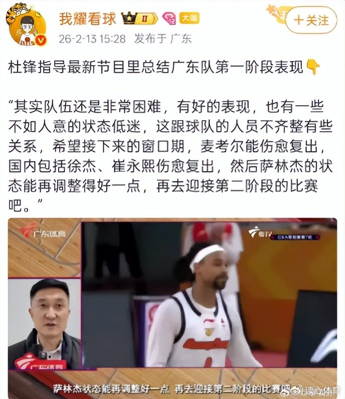 虽然第一阶段结束后,大部分宏远球迷均建议换掉状态下滑严重的萨林杰,找一名足尺寸的5号位大外援将其替换,可广东主帅杜锋在接受采访时仍拒绝换掉萨林杰,只希望其第二阶段状态能调整得更好一点,并且丝毫没有要找新外援的意思。